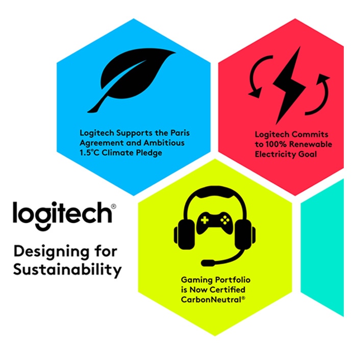 Logitech announced its gaming products are CarbonNeutral alongside its commitments to RE100 and a Science-Based Target.