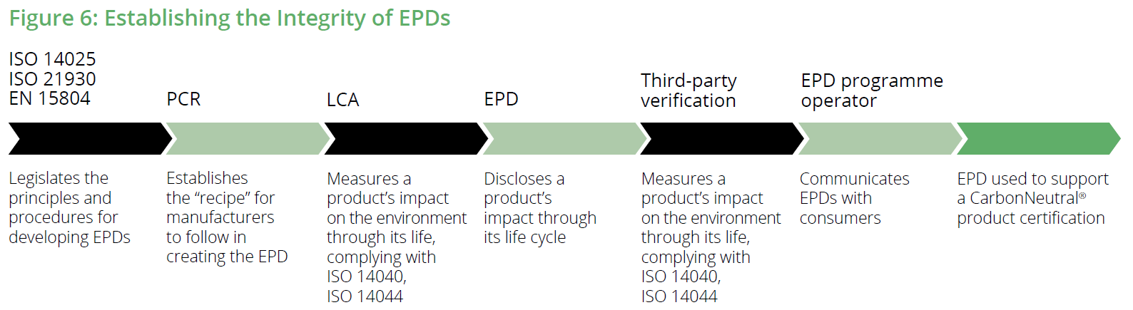 Figure 6 demonstrates how the integrity of EPDs is established by the application of a variety of third-party standards and processes: